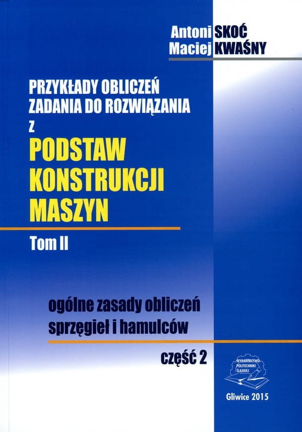 Przykłady obliczeń. Zadania do rozwiązania z podstaw konstrukcji maszyn. Tom II, część 2. Ogólne zasady obliczeń sprzęgieł i hamulców
