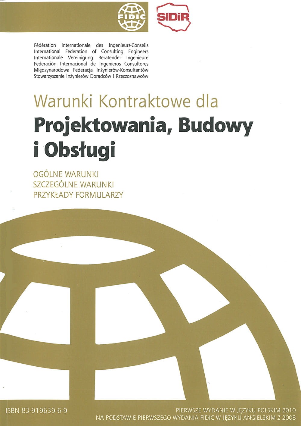 pierwsze wydanie w j.polskim 2010 na podstawie pierwszego wydania FIDIC w j. ang. z 2008 |