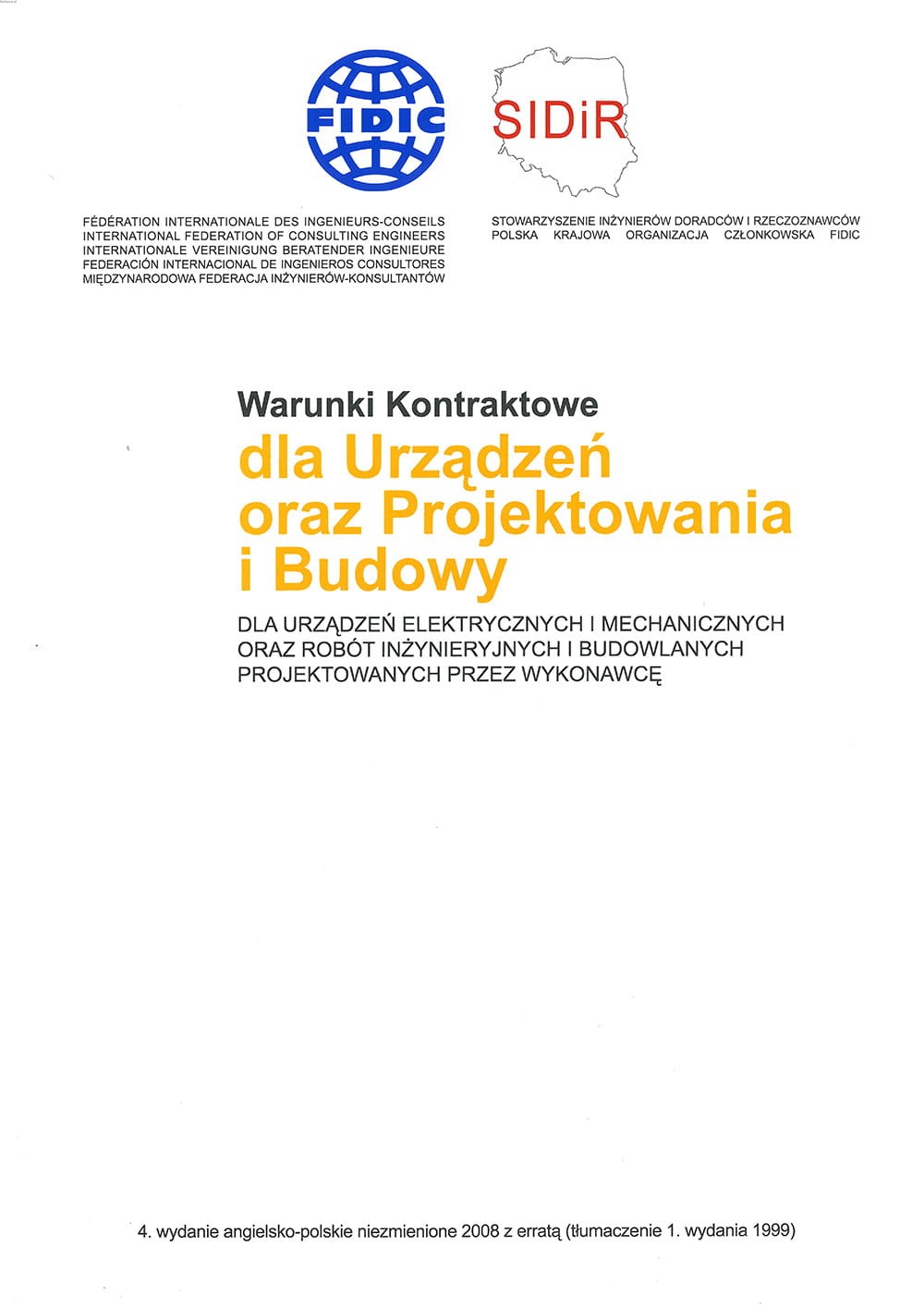 Warunki kontraktowe dla urządzeń elektrycznych i mechanicznych oraz robó inżynieryjnych i budowlanych projektowanych przez wykonawcę. Fidic żółty